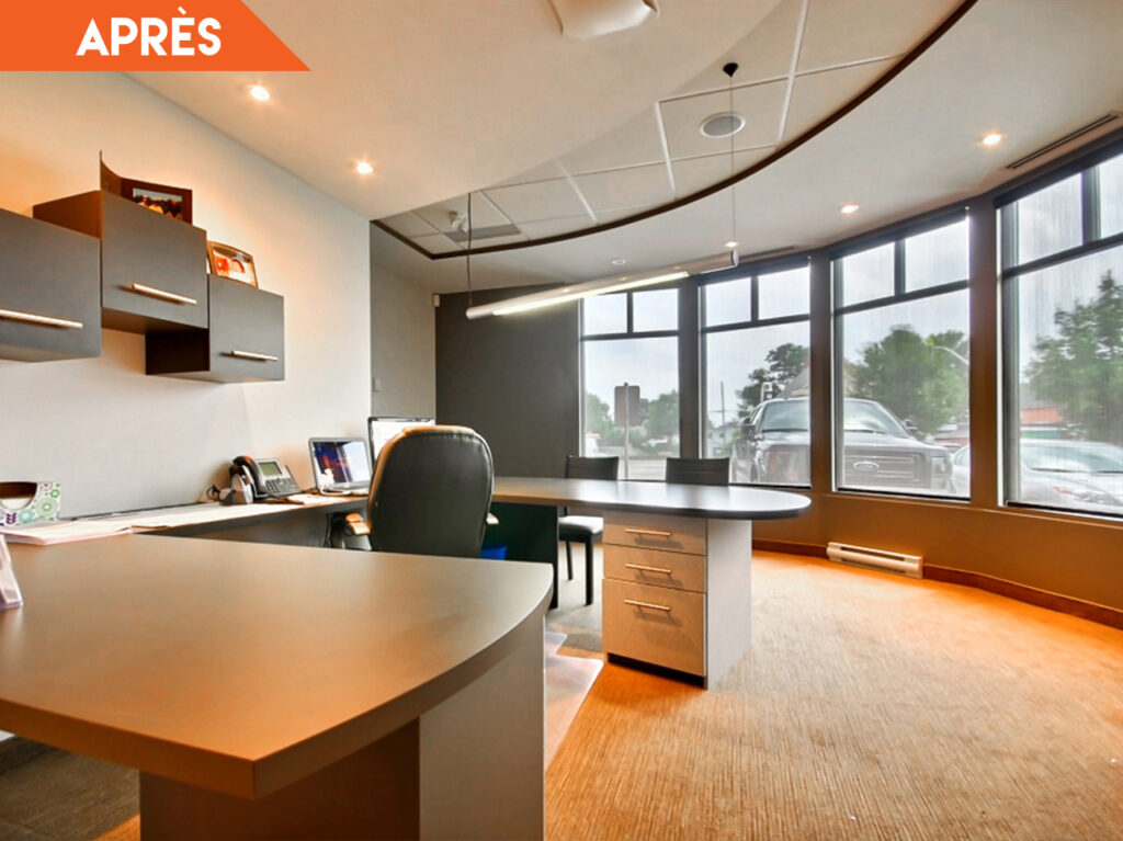 Avant d’emménager dans leur siège actuel, les bureaux de DLS Construction étaient situés au 406 boulevard Alexandre-Taché. L’équipe a transformé ce local, autrefois occupé par un commerce d’électronique, en espaces administratifs modernes adaptés à leur croissance. Fait marquant : malgré l’ajout d’un étage et les travaux d’agrandissement, la silhouette extérieure en arc de cercle a été volontairement conservée pour préserver l’identité architecturale du bâtiment. Ce projet a permis à l’entreprise de s’installer dans un lieu à son image, tout en valorisant le potentiel d’un bâtiment existant.