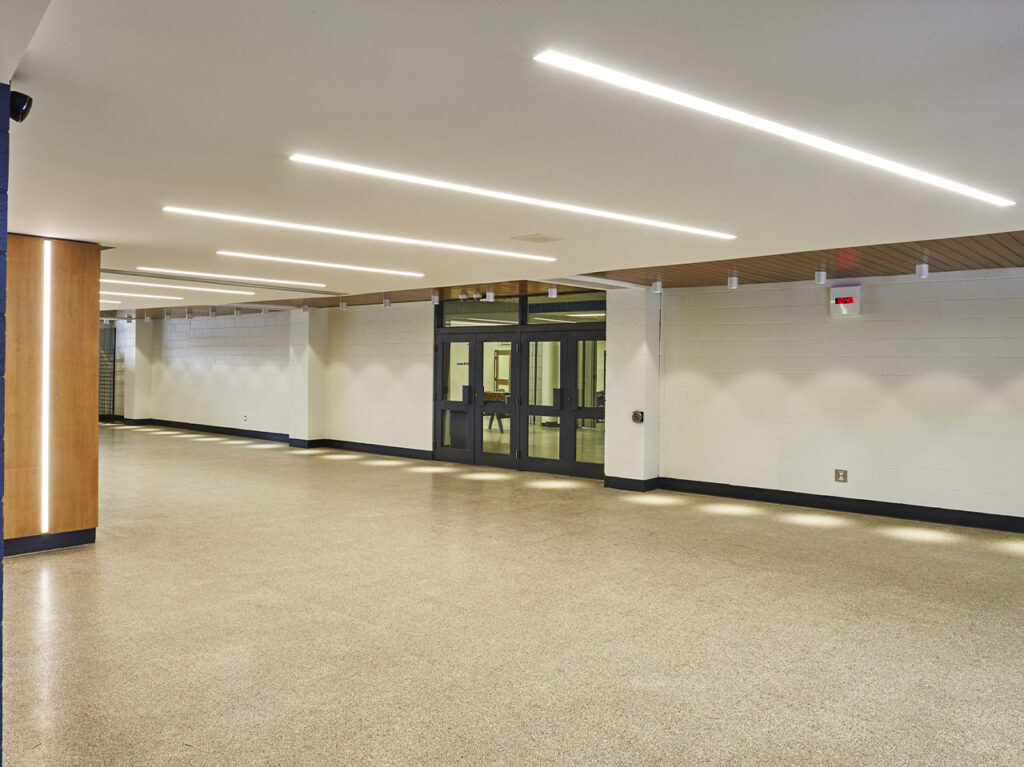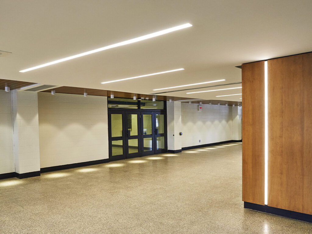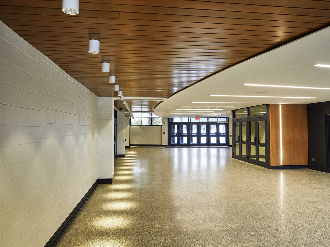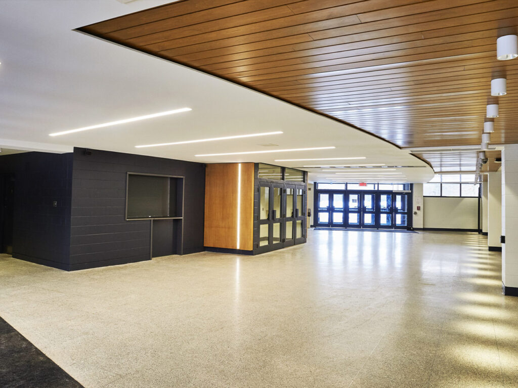 Lieu central de la vie culturelle étudiante, l’auditorium du Cégep de l’Outaouais accueille chaque année de nombreux événements scolaires et communautaires. Pour lui redonner une signature visuelle contemporaine, DLS Construction a procédé à la réfection complète de son hall d’entrée. Les travaux ont mis en valeur un agencement de matériaux soigneusement choisis; bois, gypse et éclairage intégré; pour créer un espace chaleureux et modernisé. Le défi principal du projet résidait dans la complexité technique du plafond : celui-ci présente plusieurs niveaux ainsi qu’une grande courbe architecturale qui a exigé une exécution précise, autant dans l’alignement des matériaux que dans l’harmonisation des finis.