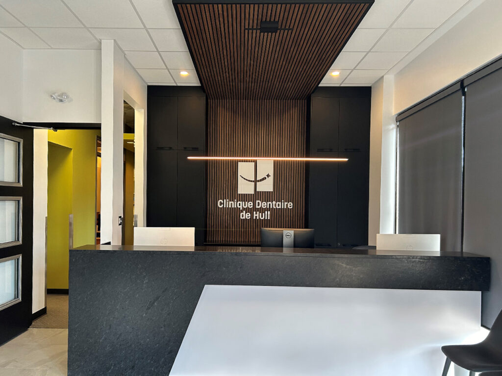 Établie depuis de nombreuses années au cœur de Hull, cette clinique dentaire de quartier offre des soins à une large clientèle, dans un environnement accessible et humain. DLS Construction a mené une rénovation complète de la clinique, incluant les salles d’examen, les bureaux administratifs, la réception, la salle d’attente, les vestiaires et même une terrasse extérieure. Les travaux se sont déroulés alors que la clinique restait pleinement opérationnelle, sans aucune fermeture. Ce contexte a nécessité une organisation rigoureuse, avec la mise en place de zones de confinement strictes et de mesures de protection accrues, pour garantir la sécurité, la propreté et la tranquillité des espaces utilisés par le personnel et les patients.