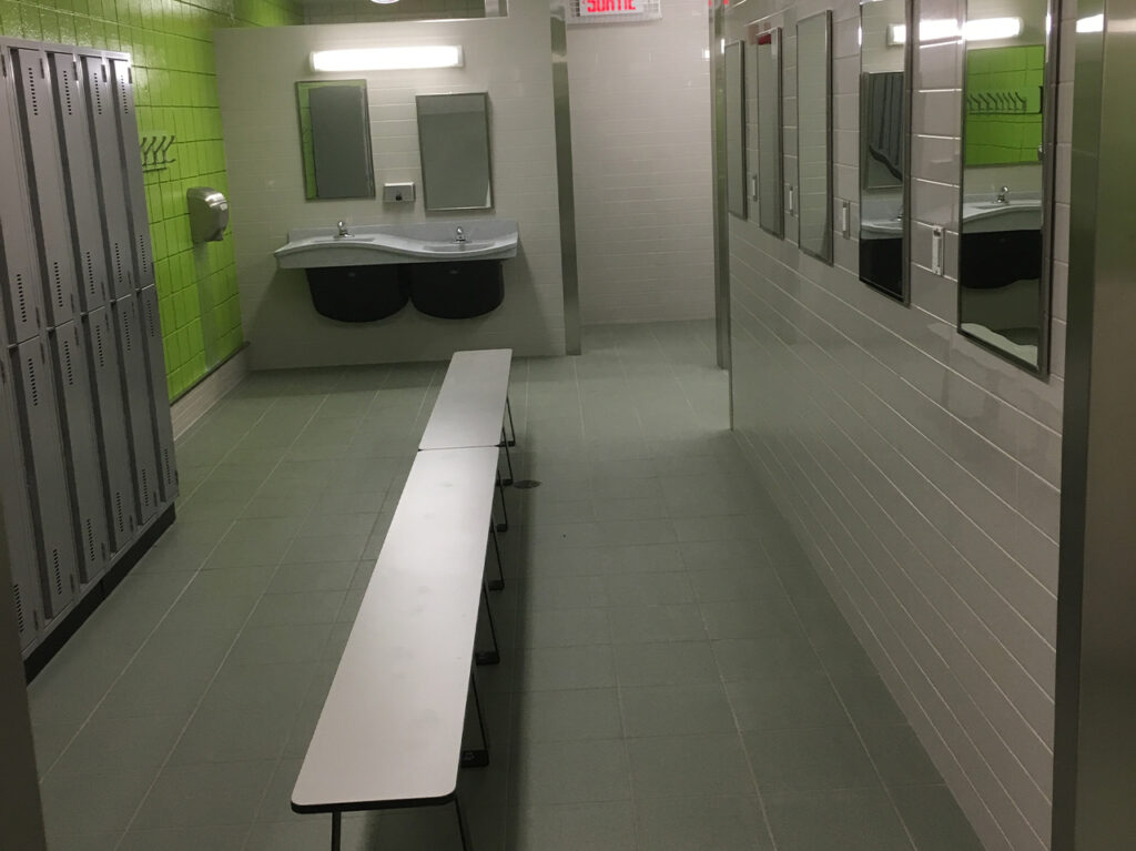 L’école de la Grande-Rivière, située à Gatineau, est une école secondaire bien ancrée dans sa communauté, offrant un environnement dynamique et axé sur la réussite scolaire. Dans le cadre de la modernisation de ses installations sportives, DLS Construction a réalisé la rénovation complète des vestiaires du gymnase et de la piscine. Les travaux comprenaient la démolition, la plomberie, le drainage sous la dalle, la réparation des structures, ainsi que la finition des douches en céramique et des planchers en époxy, pour favoriser la durabilité et la facilité d’entretien. Murs et plafonds ont également été entièrement remis à neuf. Le chantier s’est déroulé pendant l’année scolaire, ce qui a nécessité une coordination rigoureuse avec l’établissement pour limiter les impacts sur les activités quotidiennes. Une attention particulière a été portée à la sécurité des élèves, à la gestion des accès et à la réduction des nuisances (bruit, poussière, circulation). L’ensemble des interventions a été réalisé dans des délais serrés, sans compromis sur la qualité d’exécution.