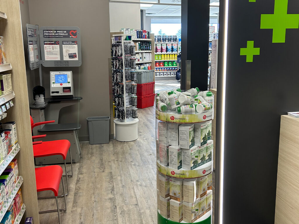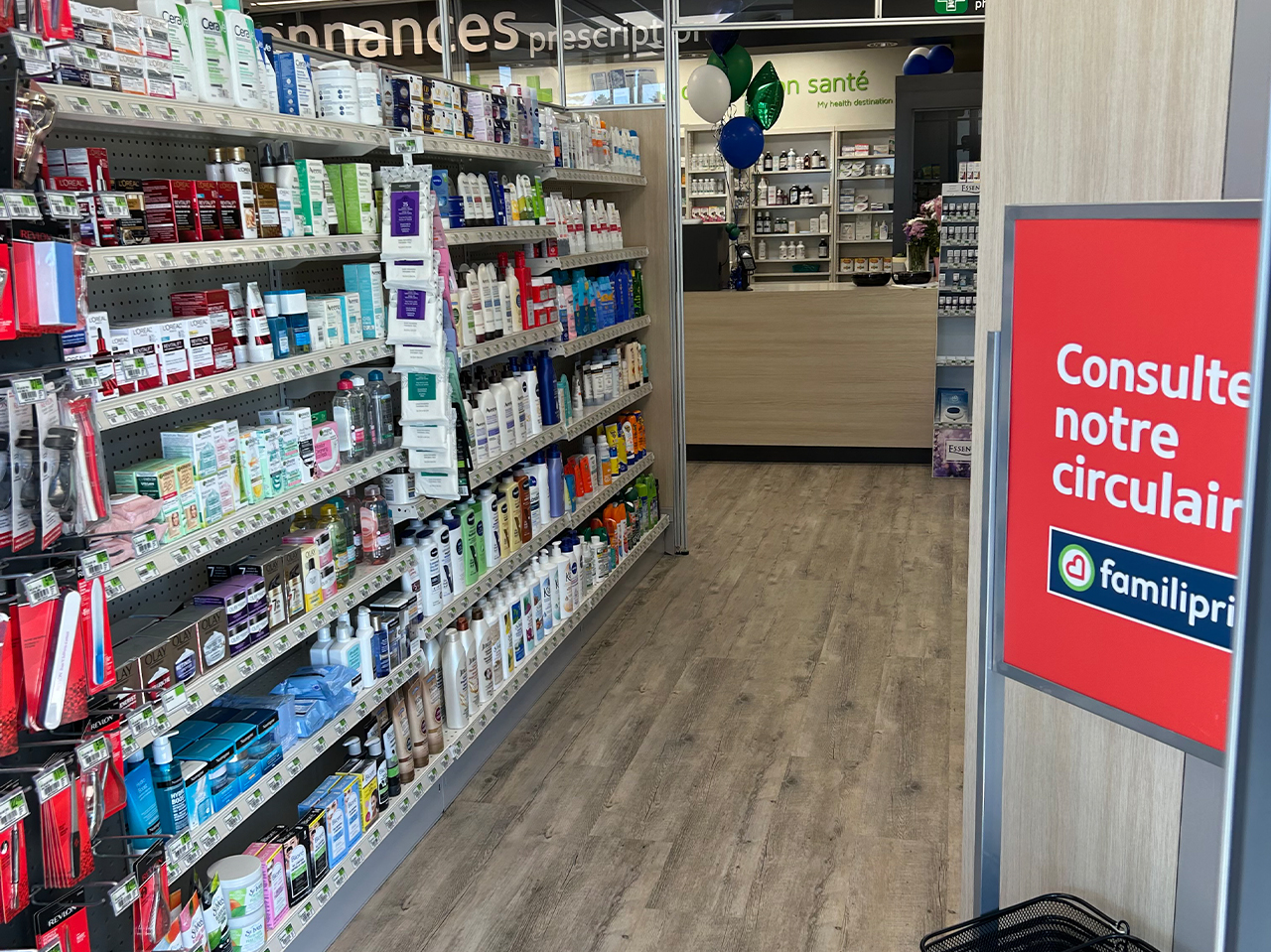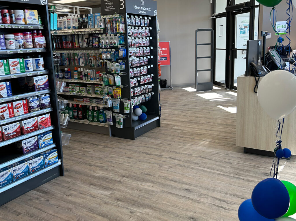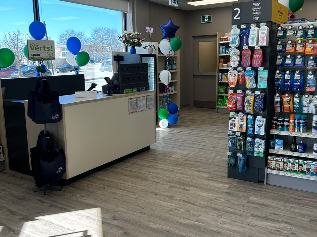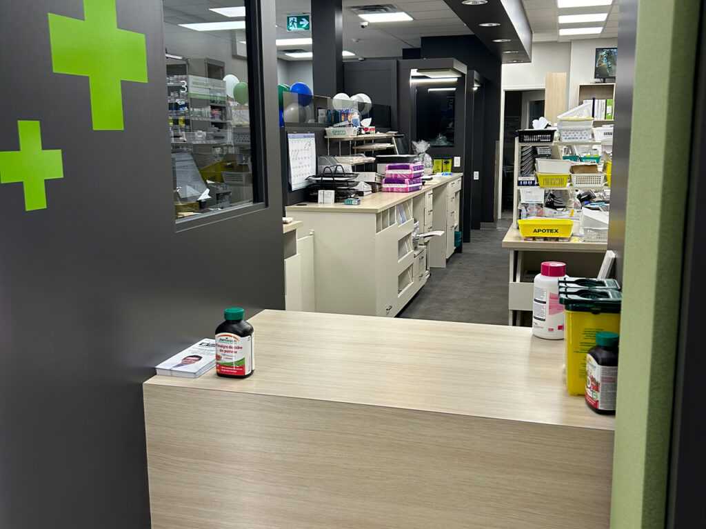 Situé dans le bâtiment autrefois occupé par la Caisse populaire Desjardins d’Aylmer, ce nouveau Familiprix marque une transformation majeure du site. DLS Construction a entièrement réaménagé les lieux pour accueillir la pharmacie, incluant un laboratoire, des bureaux, une salle de consultation et l’ensemble des comptoirs et espaces destinés au public. Une partie du local a aussi été aménagée en base immobilière pour un futur locataire. L’ancienne voûte de la banque a été conservée à la demande du maître d’ouvrage, puis intégrée à l’aménagement intérieur pour servir d’espace sécurisé aux archives et aux bureaux. Cette contrainte particulière a représenté un défi architectural, nécessitant une coordination précise pour préserver l’élément tout en le mettant en valeur.