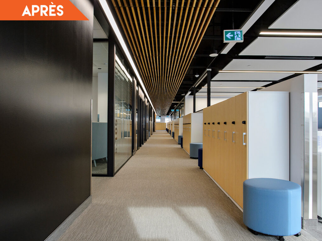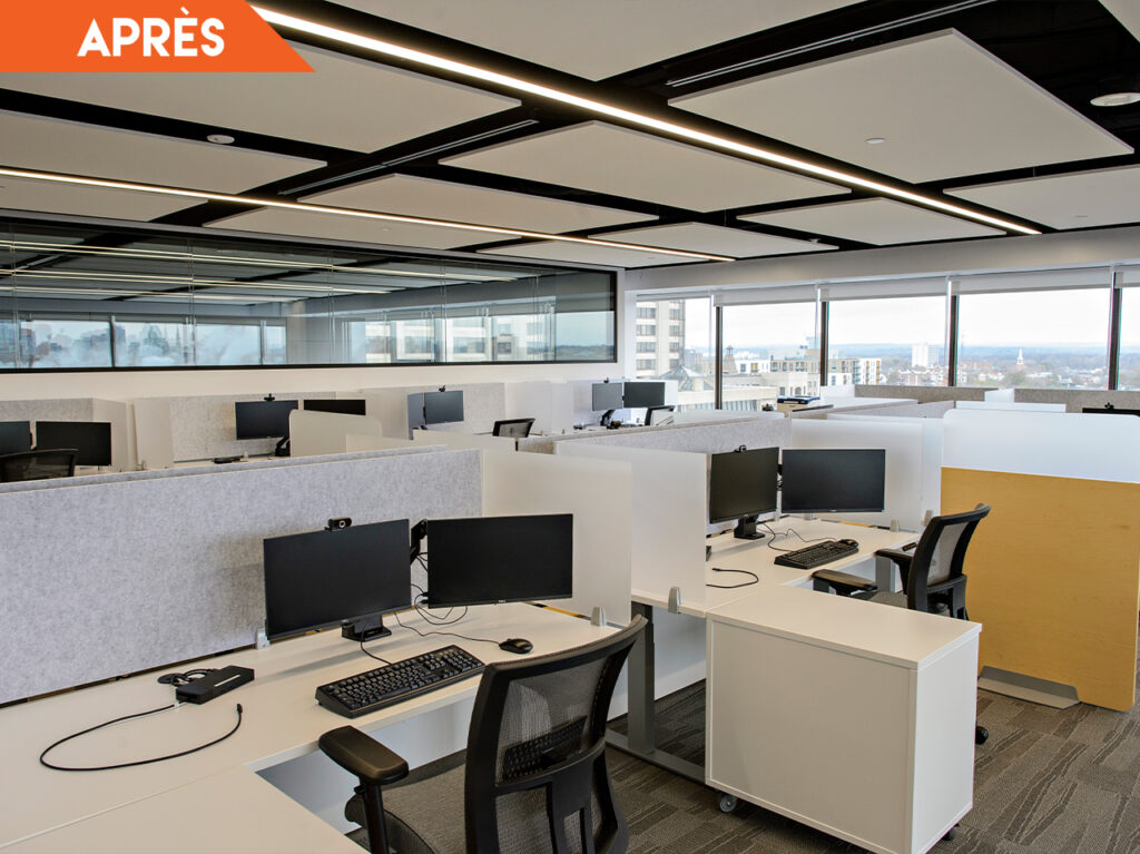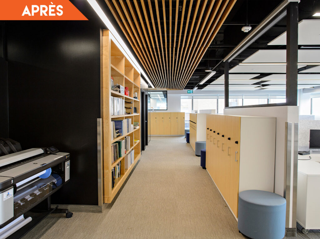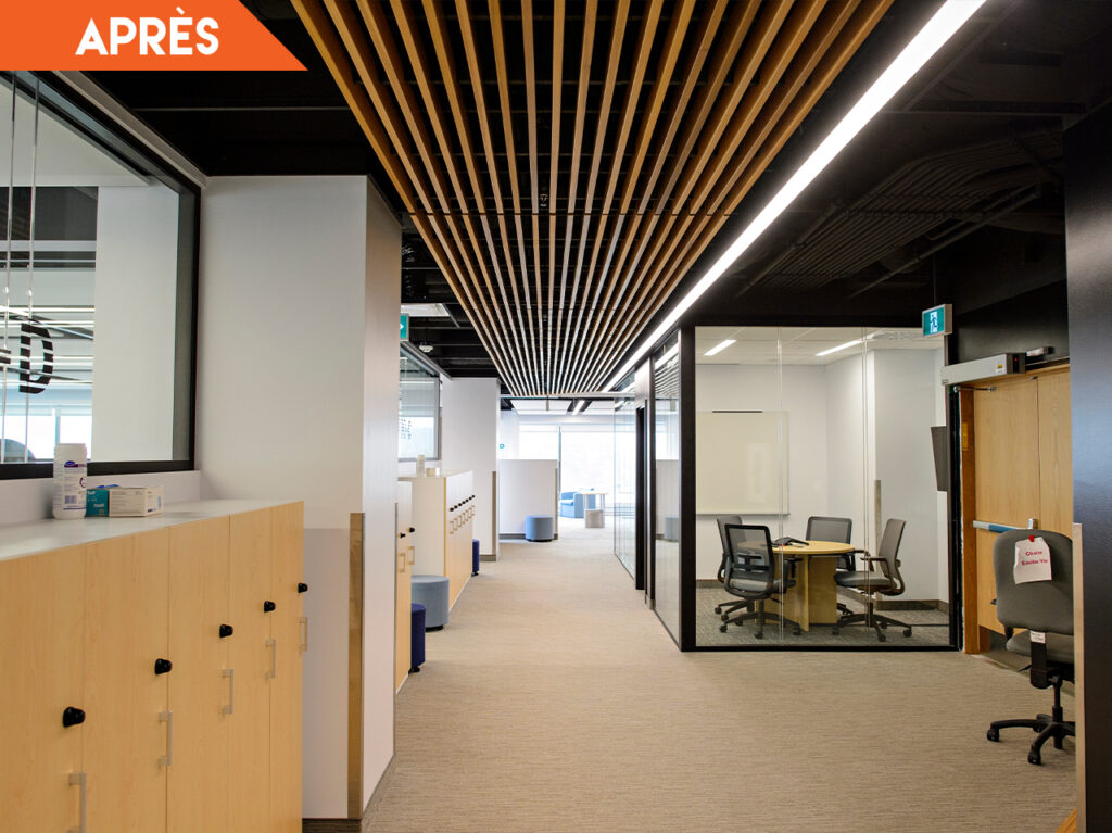 Situé en plein centre-ville de Gatineau, l’édifice abritant le ministère des Transports a fait l’objet d’un réaménagement complet de son 5e étage. Dans une volonté d’évolution vers des milieux de travail plus dynamiques, DLS Construction a converti les bureaux conventionnels en espaces 2.0 à aire ouverte, favorisant la collaboration, la flexibilité et le partage. Ce type d’aménagement est de plus en plus adopté dans les ministères provinciaux pour favoriser l'efficacité et le bien-être au travail. Le principal défi du projet résidait dans sa logistique : les travaux ayant lieu en hauteur, et les ascenseurs étant trop petits, tous les matériaux et équipements ont dû être transportés par grue; une opération délicate et réglementée, surtout en pleine zone urbaine.